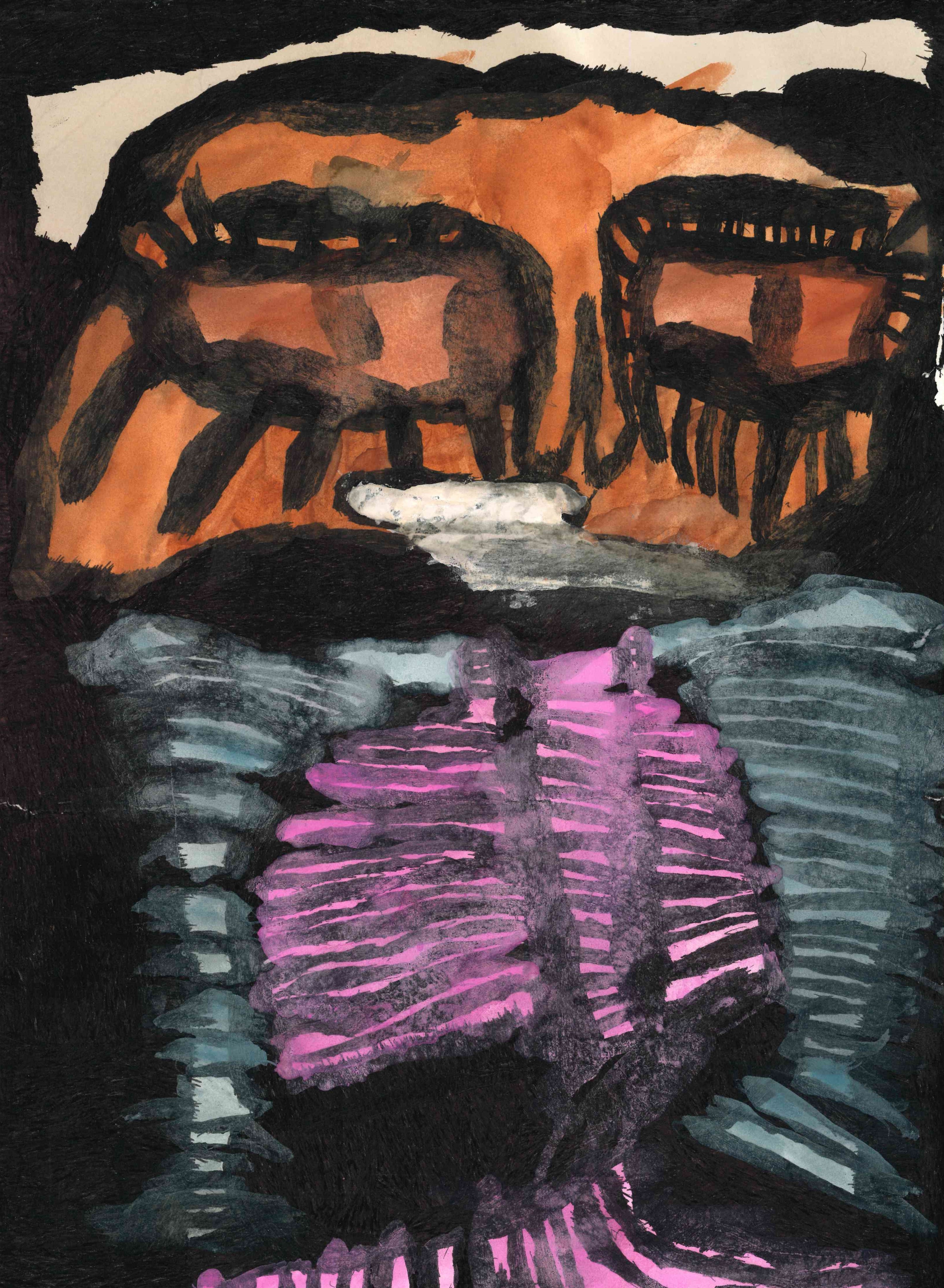 mixed Media (marker, ink, watercolor, and gel pen) on illustration board