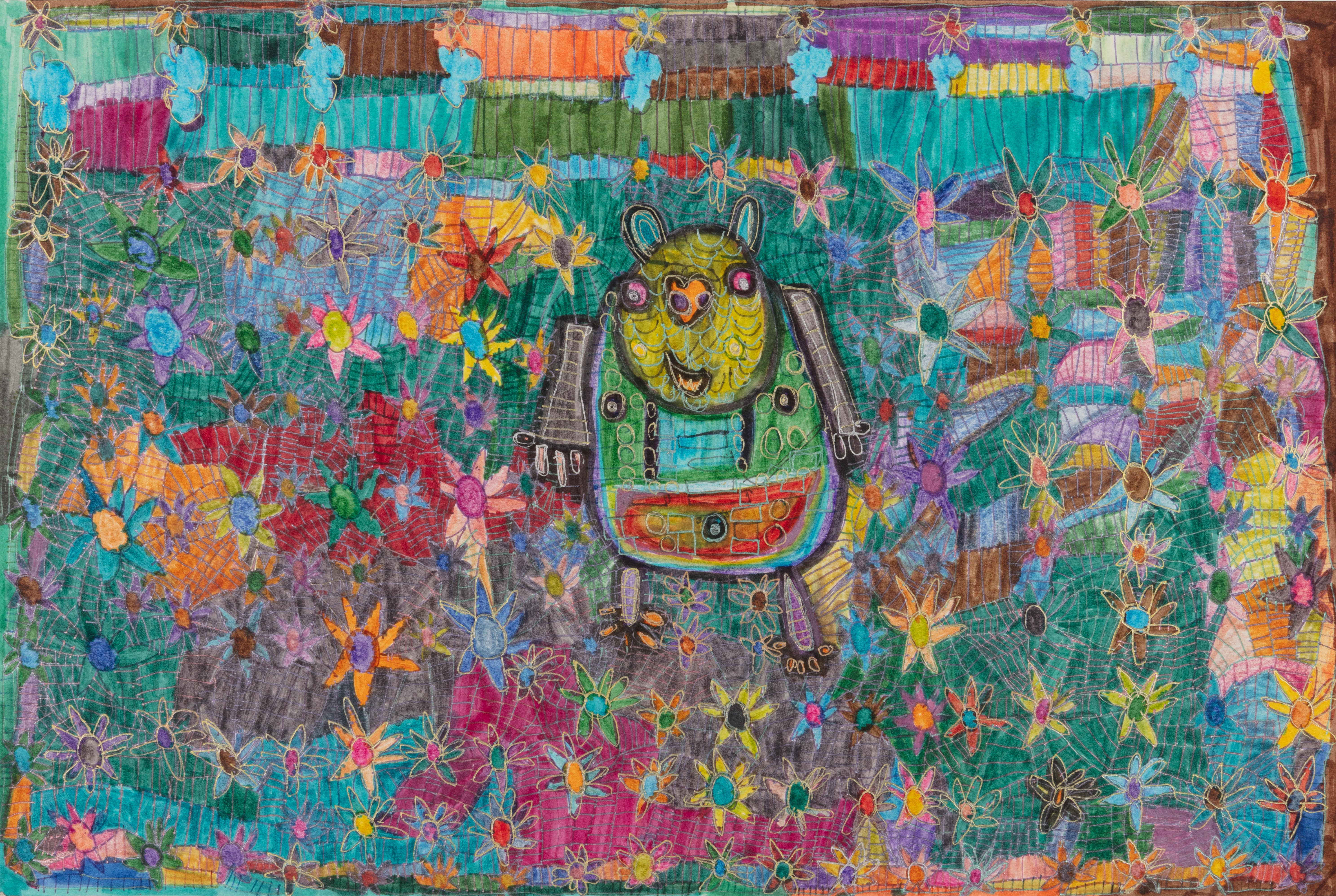 water color, colored pencil, and marker on paper